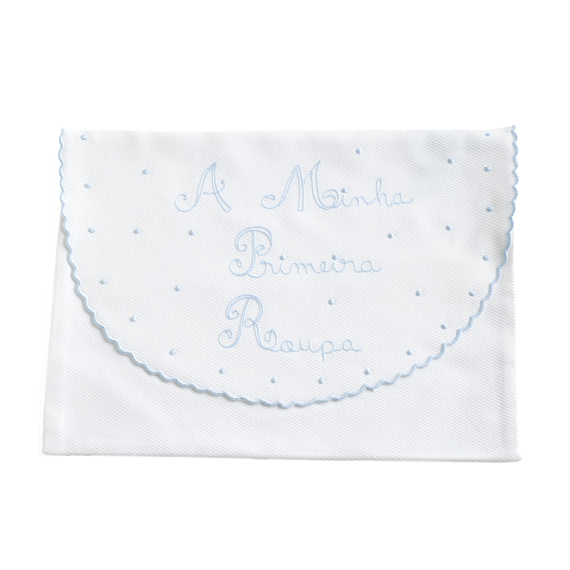A Bolsa “A Minha Primeira Roupa”, em piquet branco 100% algodão, com bordado manual em tons de azul, guarda com carinho, segurança e elegância a primeira roupa do seu bebé. Esta peça do enxoval não só é funcional, como também representa uma das memórias mais preciosas da maternidade, combinando suavidade com sofisticação.