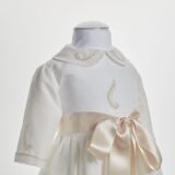 “A escolha deste conjunto reflete qualidade e estilo para o bebé, mostrando que cada peça foi elaborada com dedicação e cuidado.. Os materiais duráveis permitem usar o conjunto em diversas ocasiões, preservando sempre a sua elegância e conforto.