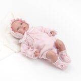 Um conjunto criado para envolver o bebé na suavidade e no calor natural da lã merino. Composto por fofo em malha, touca e botinhas a condizer, é cuidadosamente confecionado de forma artesanal, garantindo conforto, elegância e um toque de ternura em cada detalhe.