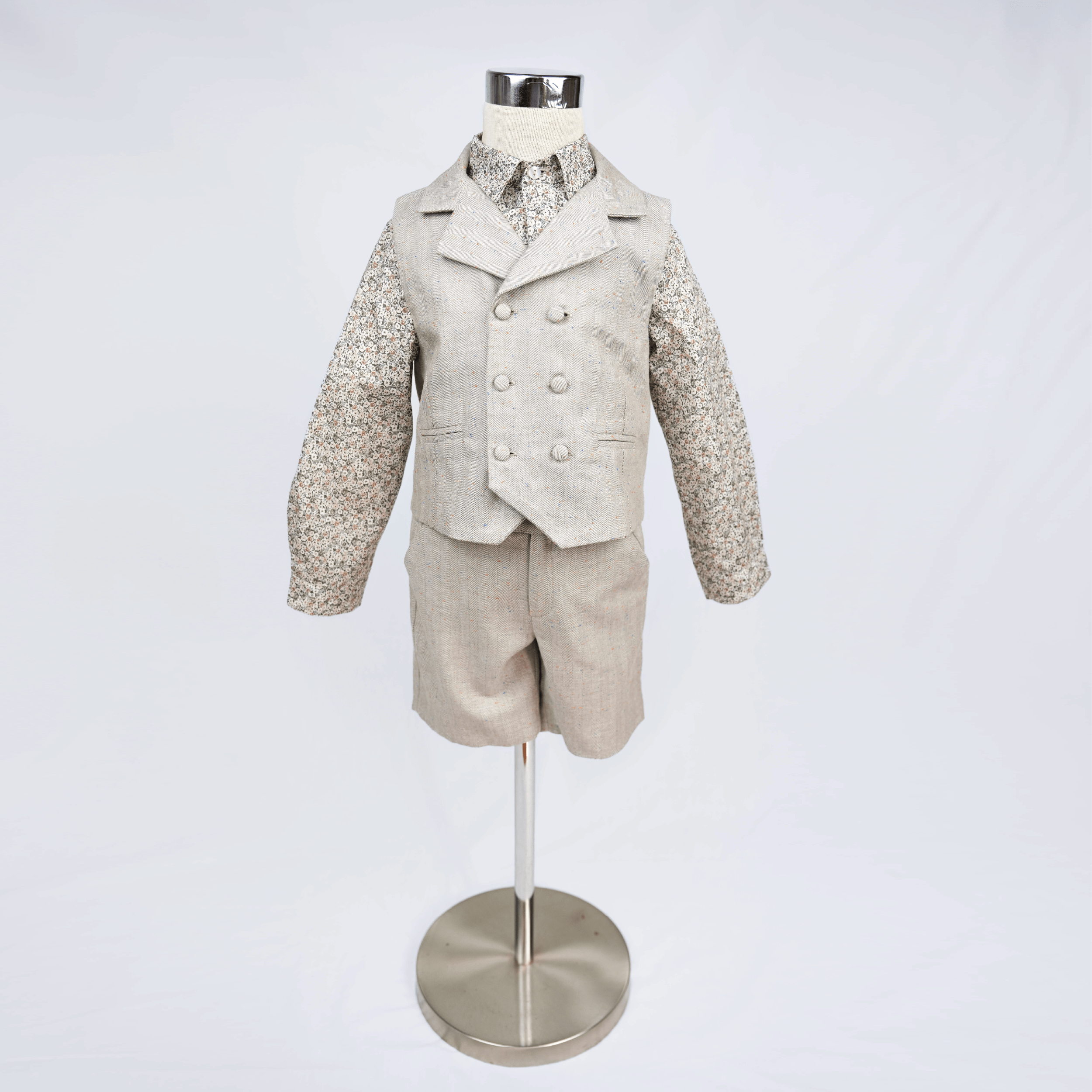 Conjunto de menino com camisa e calção e colete em algodão, pensado para unir conforto, elegância e momentos especiais. Além disso, os tons suaves e delicados conferem um estilo clássico, ao mesmo tempo leve e descontraído, acompanhando o menino com charme em cada dia.