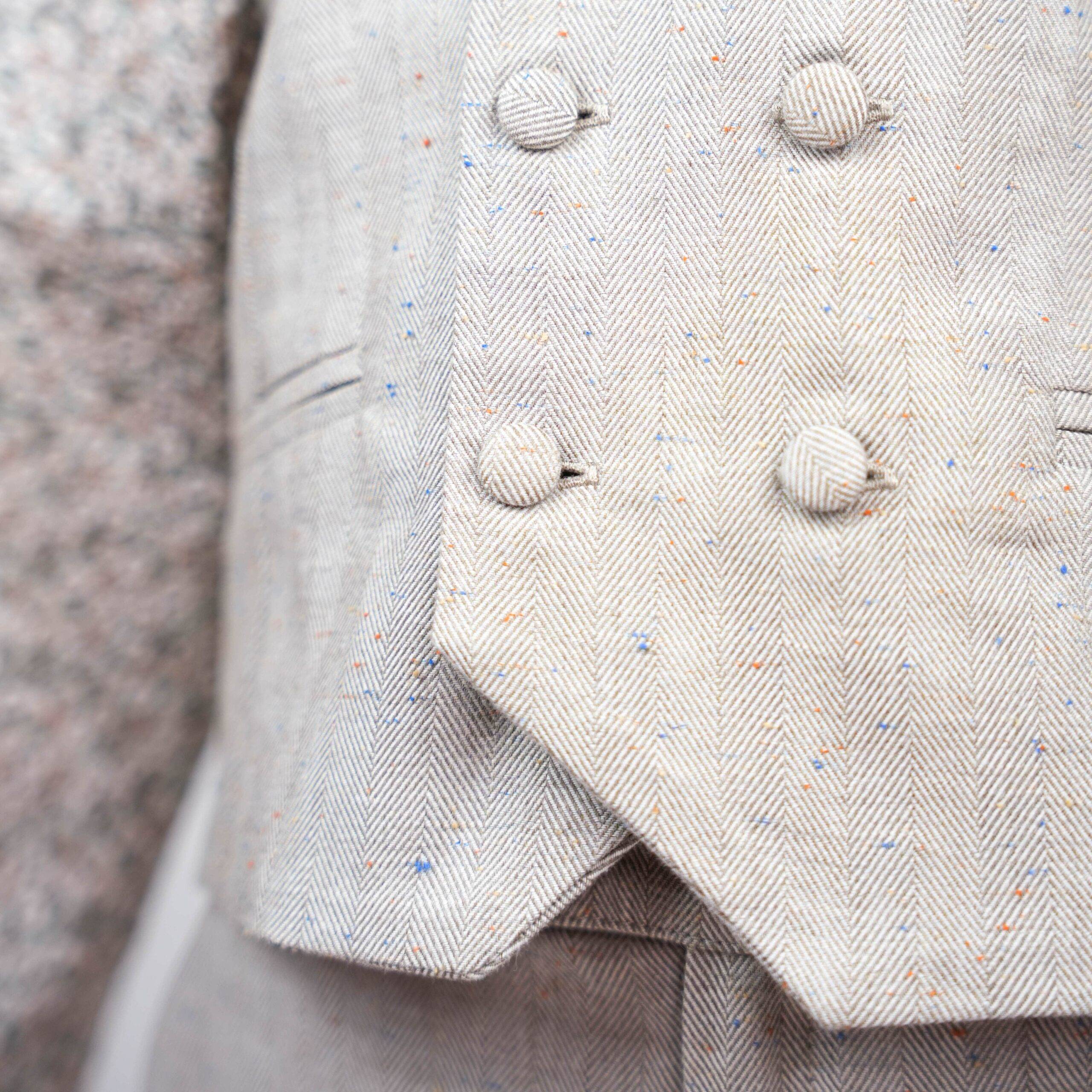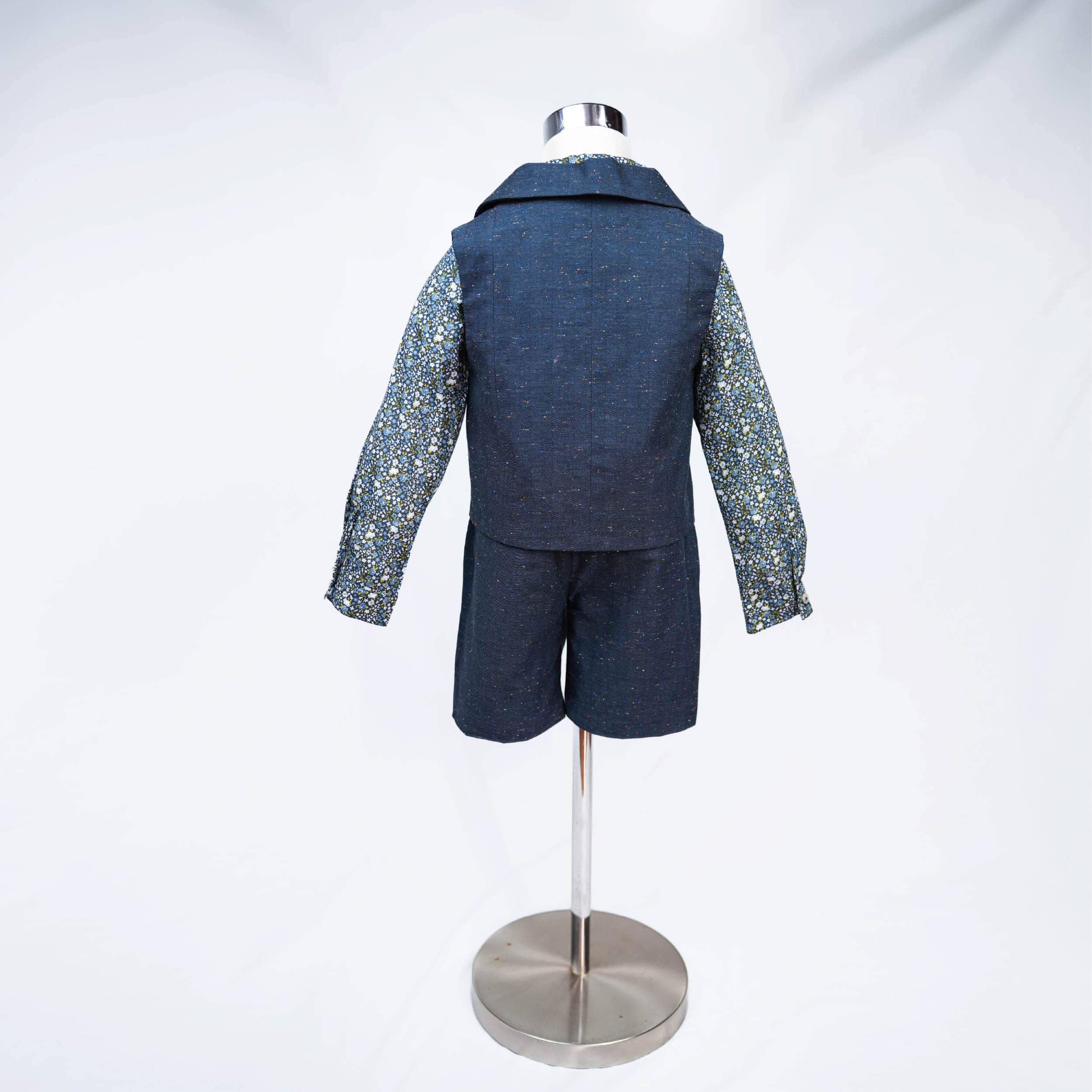 O calção e o colete, confeccionado em tecido natural de algodão, envolve a pele com suavidade e frescura. Assim, mantém o menino confortável durante os dias quentes e eventos ao ar livre, oferecendo liberdade de movimentos e bem-estar, sem perder o visual cuidado e cheio de personalidade.