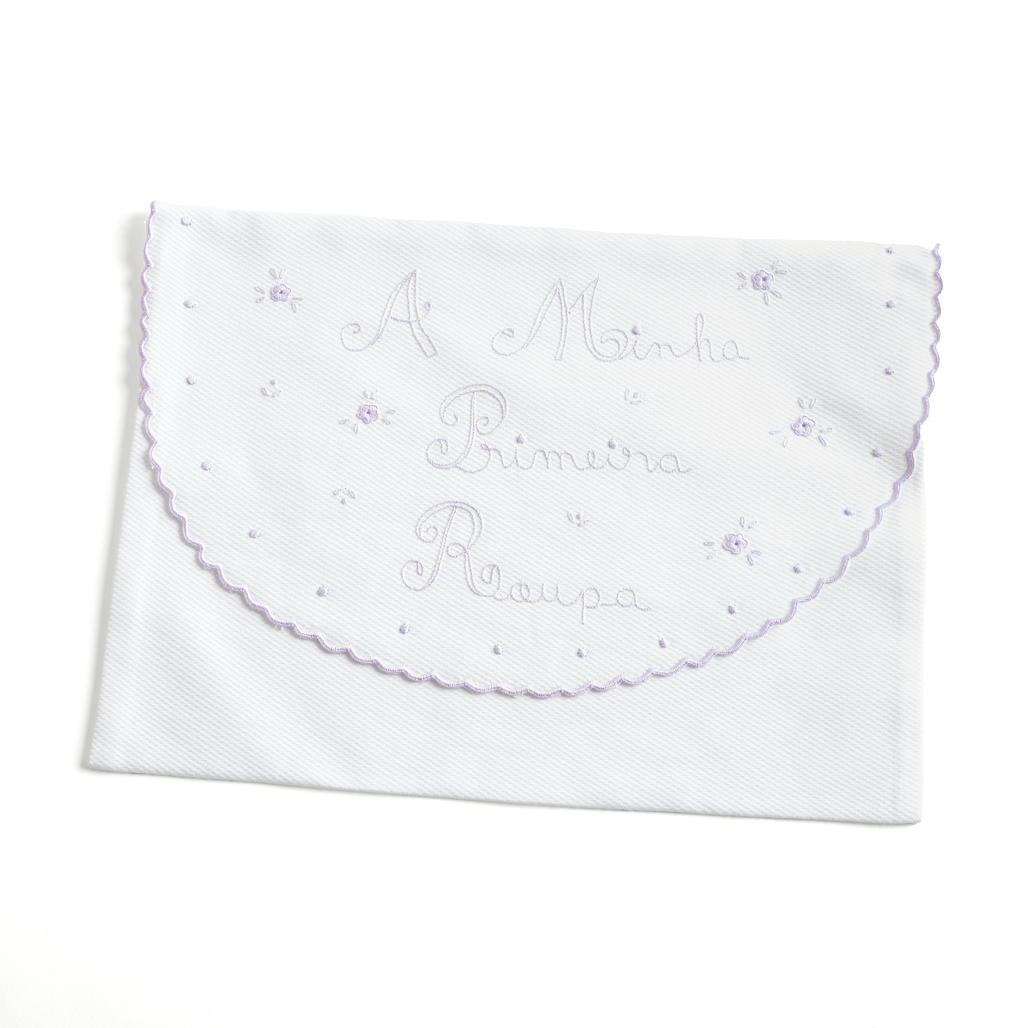 Que se destaca pela suavidade ao toque, além disso, oferece a resistência necessária para proteger a peça mais simbólica do enxoval: a primeira roupa do recém-nascido. O bordado em lilás suave, com a inscrição “A Minha Primeira Roupa”, dá-lhe um charme neutro e delicado. Dessa forma, torna-se uma opção perfeita tanto para menino como para menina.