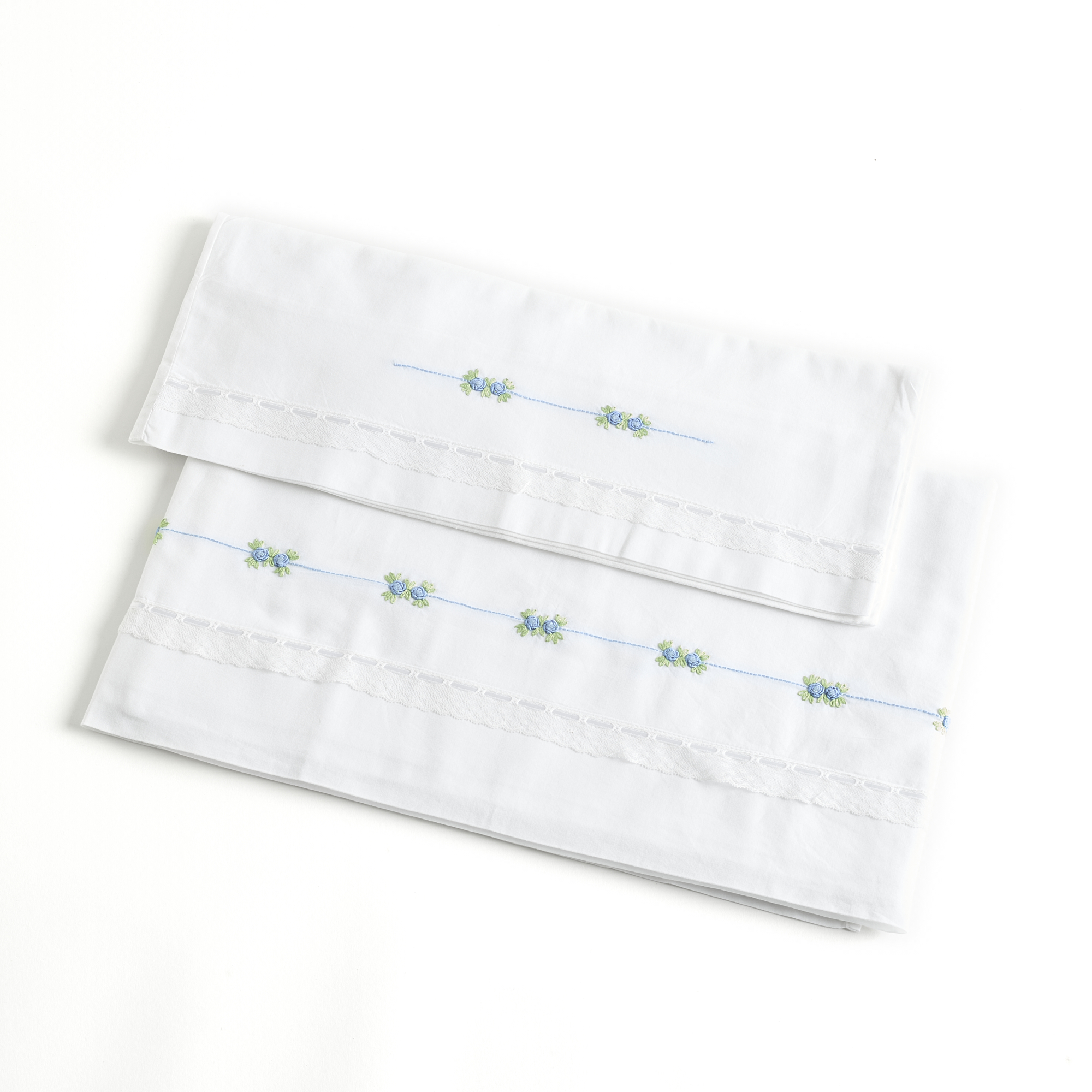 Lençol Folha Verde Bordado à Mão – Um Toque Clássico e Intemporal para o Enxoval do Bebé