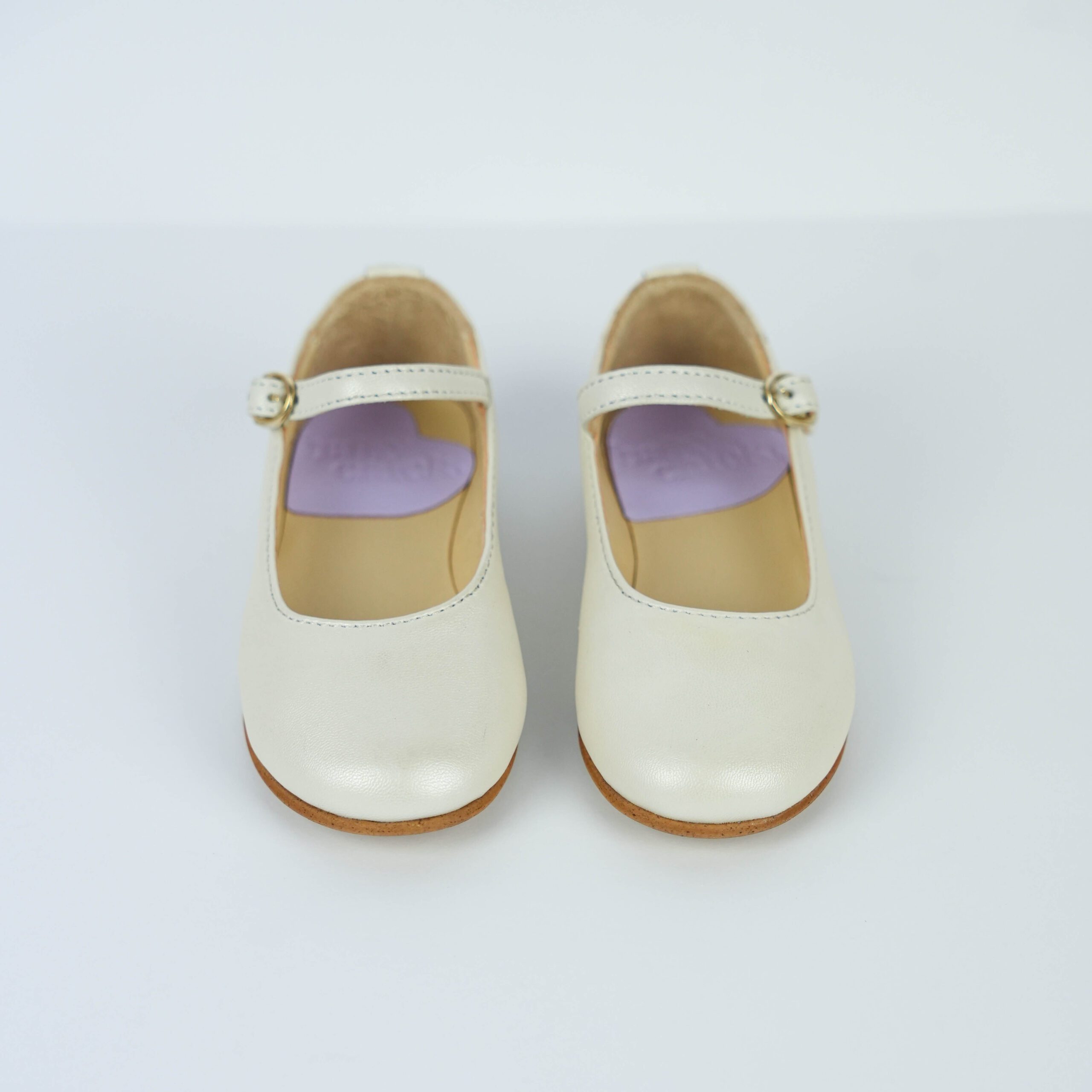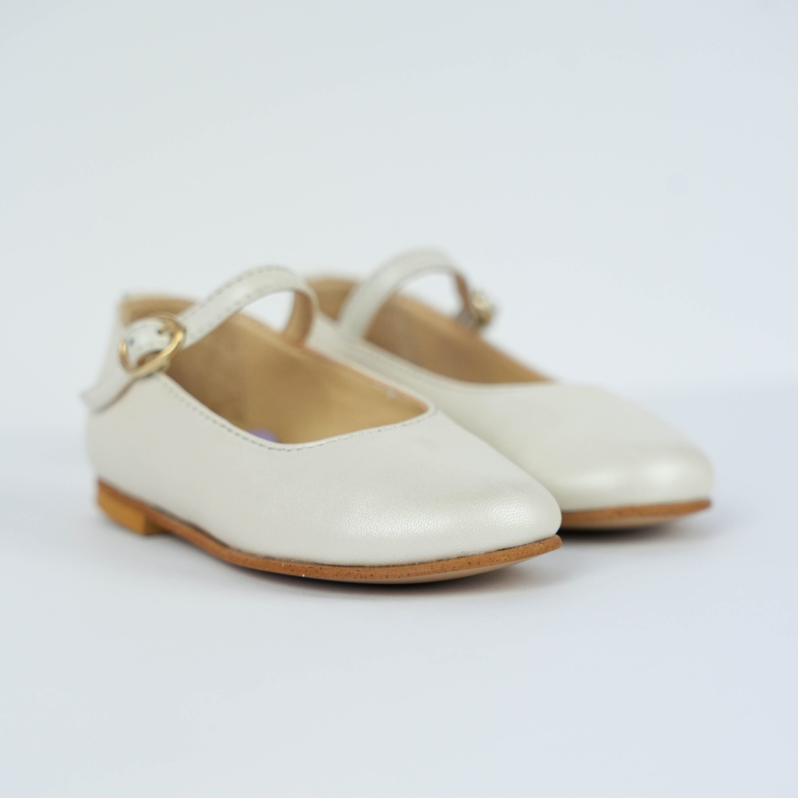 Sabrina de Menina em pele pérola com fivela, selecionado pela Babychick, é um verdadeiro ícone de charme e delicadeza no universo do calçado infantil. Feito em pele genuína e feito à mão, este sapato foi criado com elegância e conforto. Por isso, é ideal para casamentos, festas e outras ocasiões especiais.