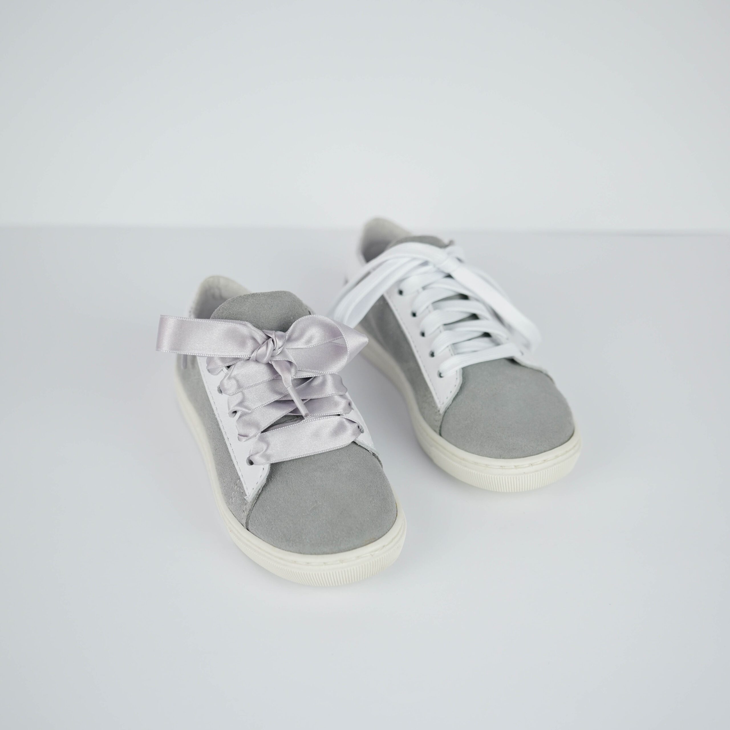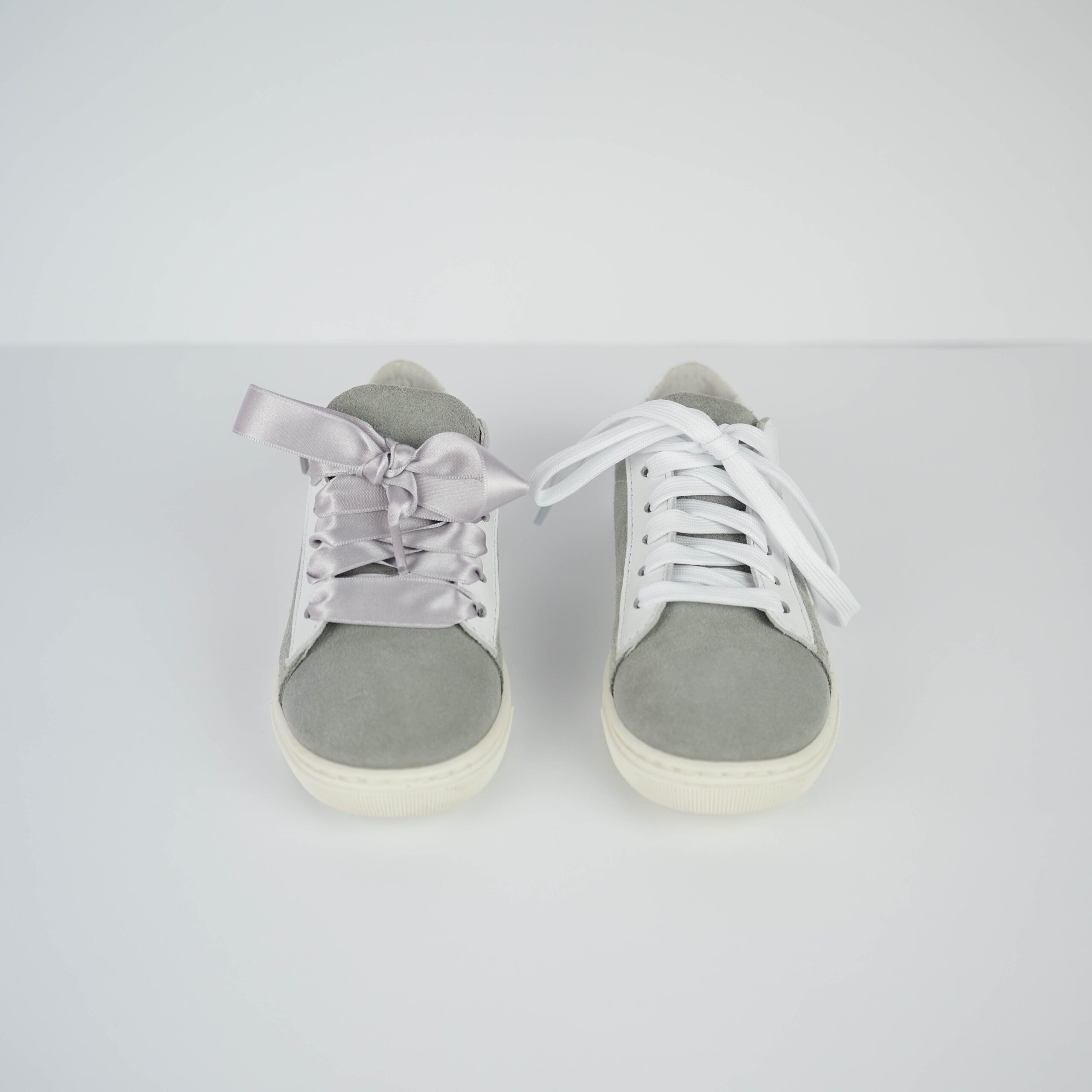 Sapatilhas em pele em cinza e branco, selecionado pela Babychick, é um verdadeiro ícone de charme e delicadeza no universo do calçado infantil. Feito em pele genuína e feito à mão, este sapato foi criado com elegância e conforto.