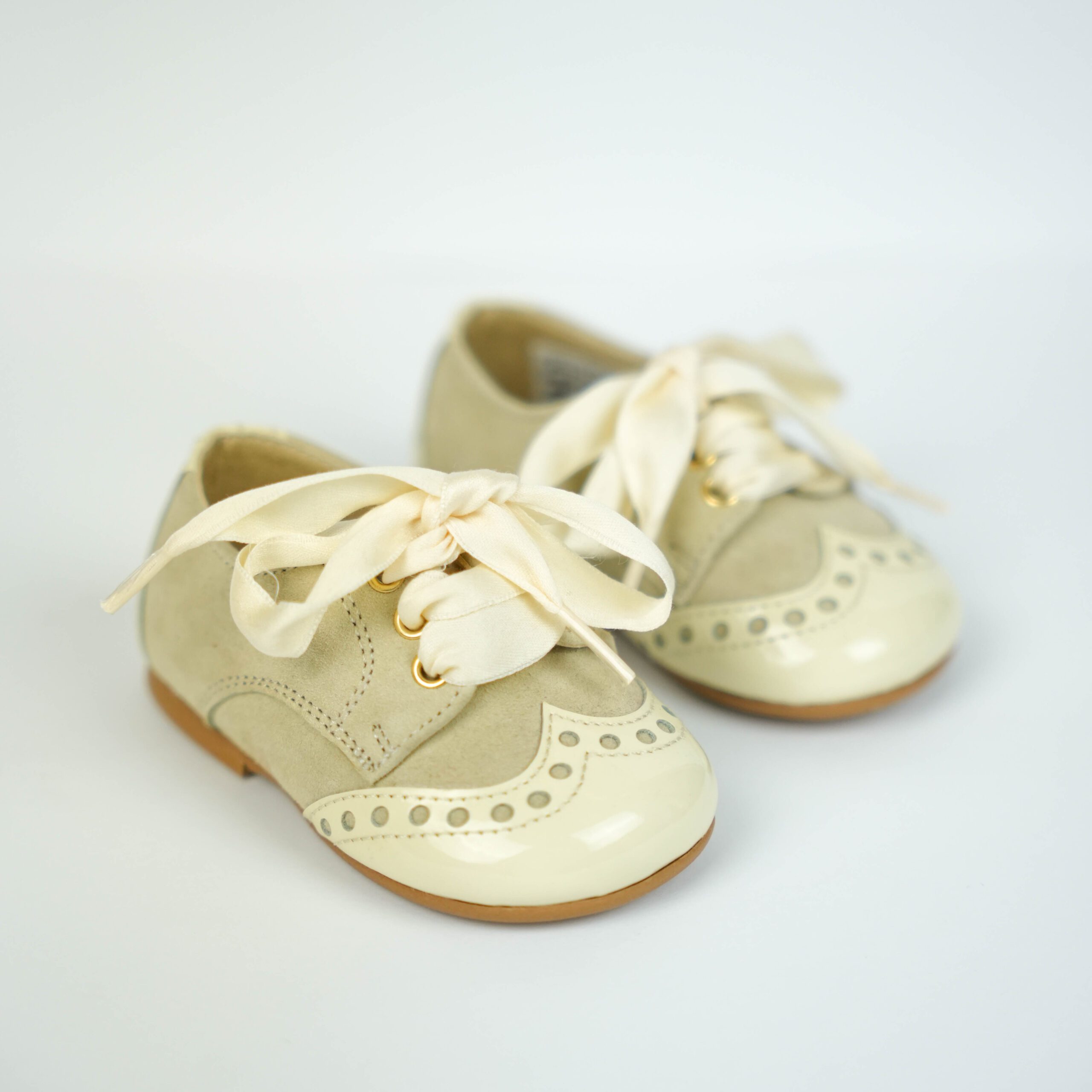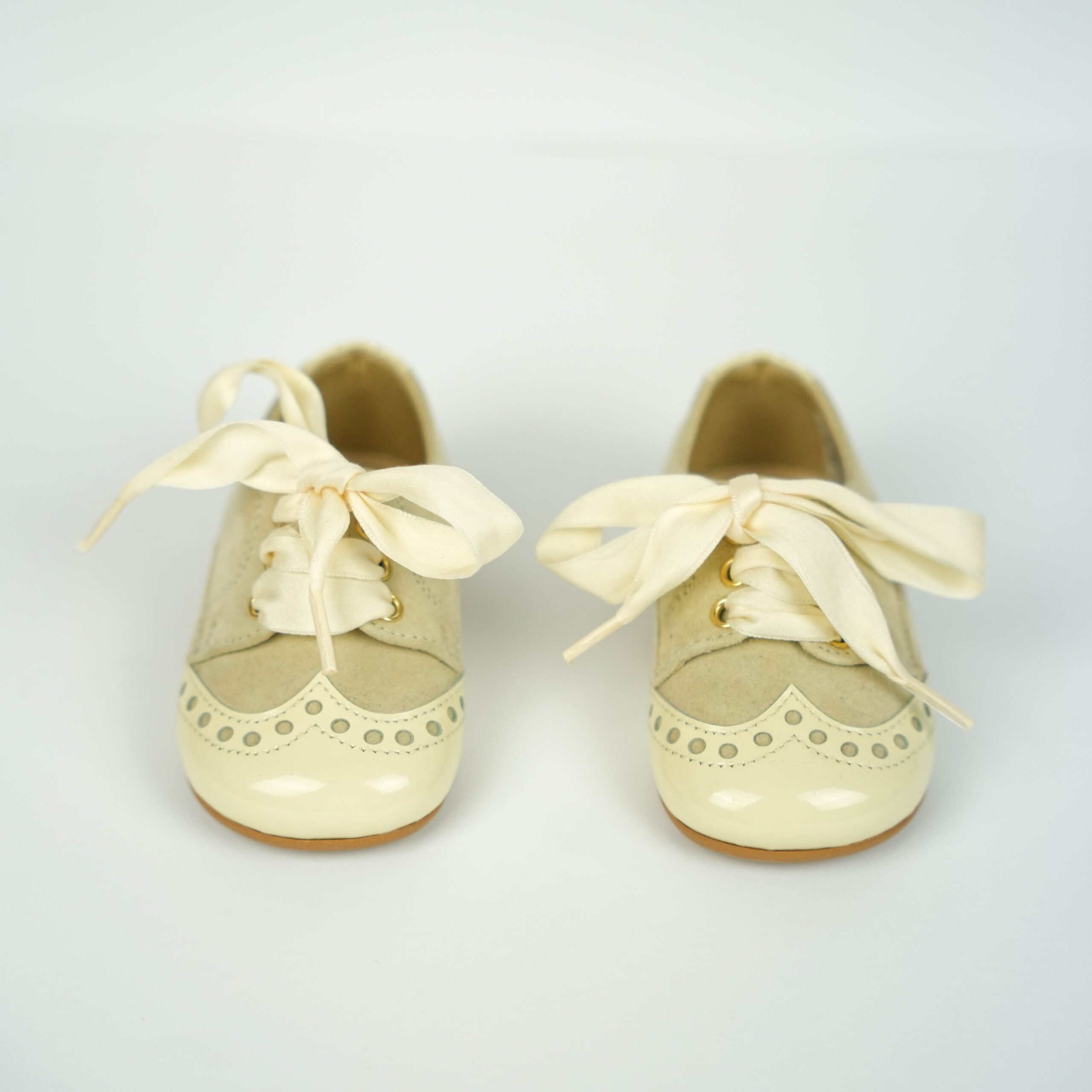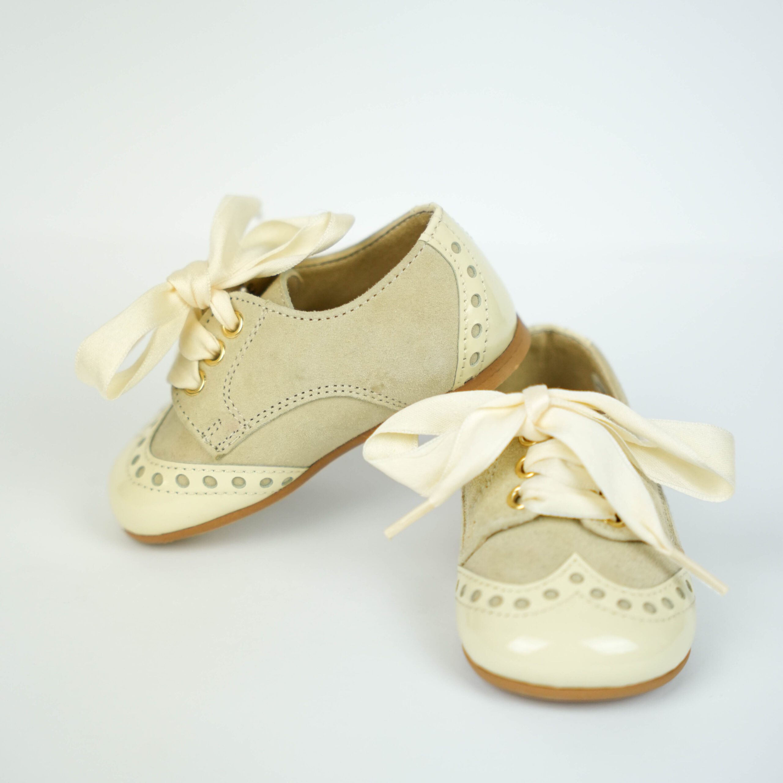 O Sapato de Menino de verniz e camurça feito em pele bege da Clarys, selecionado pela Babychick, é um verdadeiro ícone de charme e delicadeza no universo do calçado infantil. Feito em pele genuína e feito à mão, este sapato foi criado com elegância e conforto. Por isso, é ideal para batizados, casamentos, festas e outras ocasiões especiais.