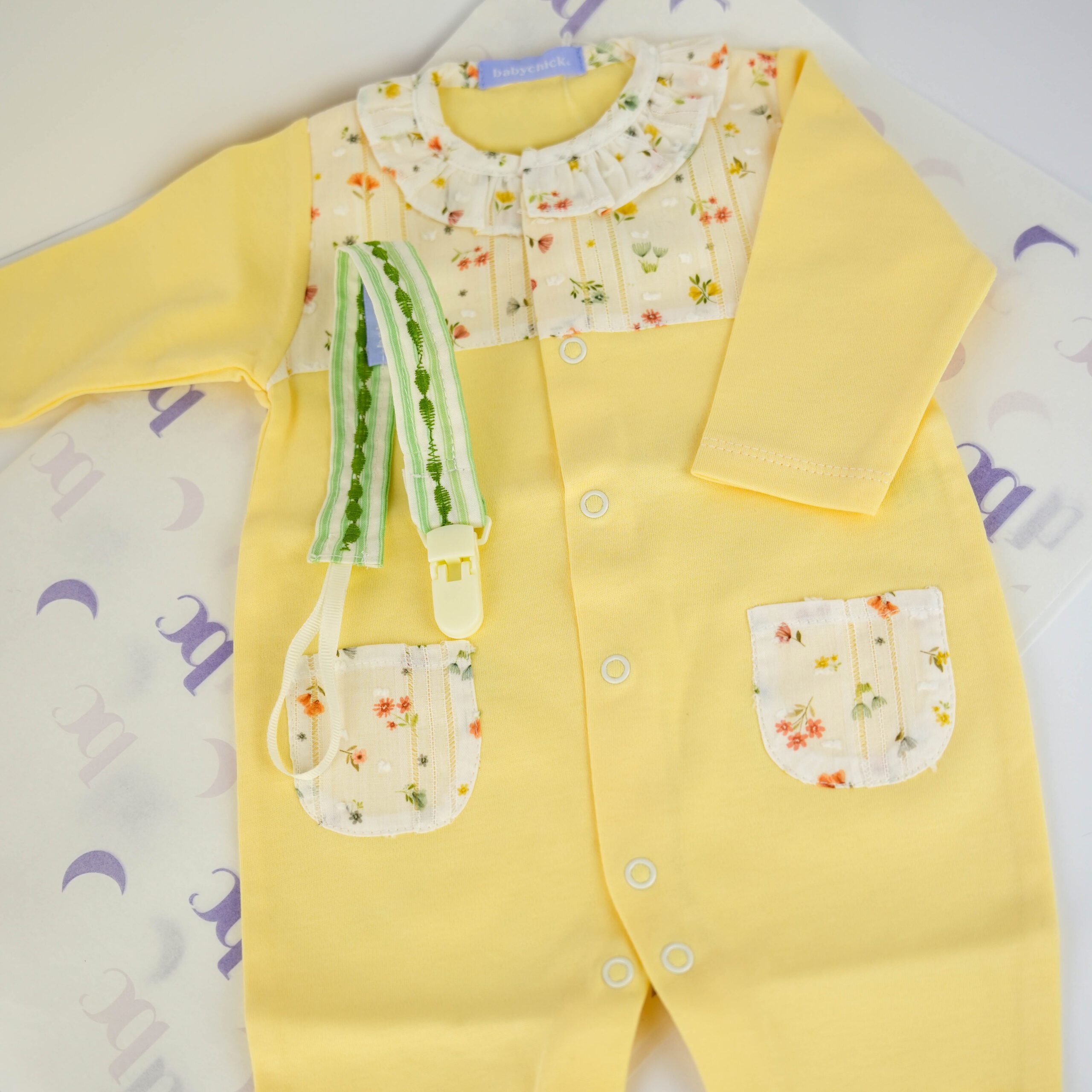 Confeccionado em algodão, babygrow e manta e prende chucha apresentam uma textura suave, leve e respirável. Ajuda a manter a temperatura corporal estável. É uma escolha perfeita para quem procura artigos de qualidade, durável e cheio de carinho, ideal para oferecer ou guardar como lembrança do nascimento de um bebé.