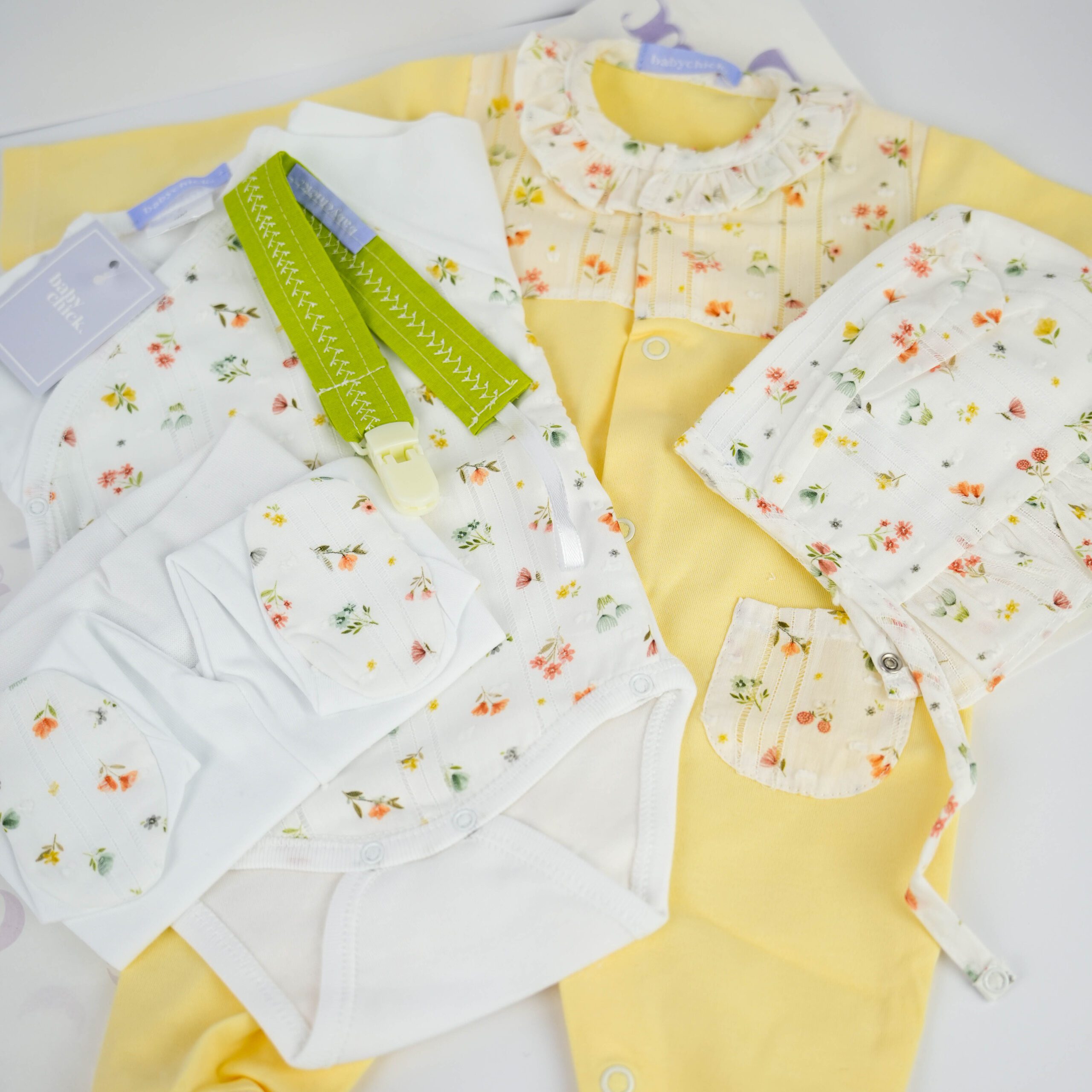 O conjunto foi pensado para envolver o bebé no máximo conforto. Inclui Babygrow, Prende Chucha, Body, Calça e Touca para Bebé, cuidadosamente confeccionados para manter o conforto do seu bebé.