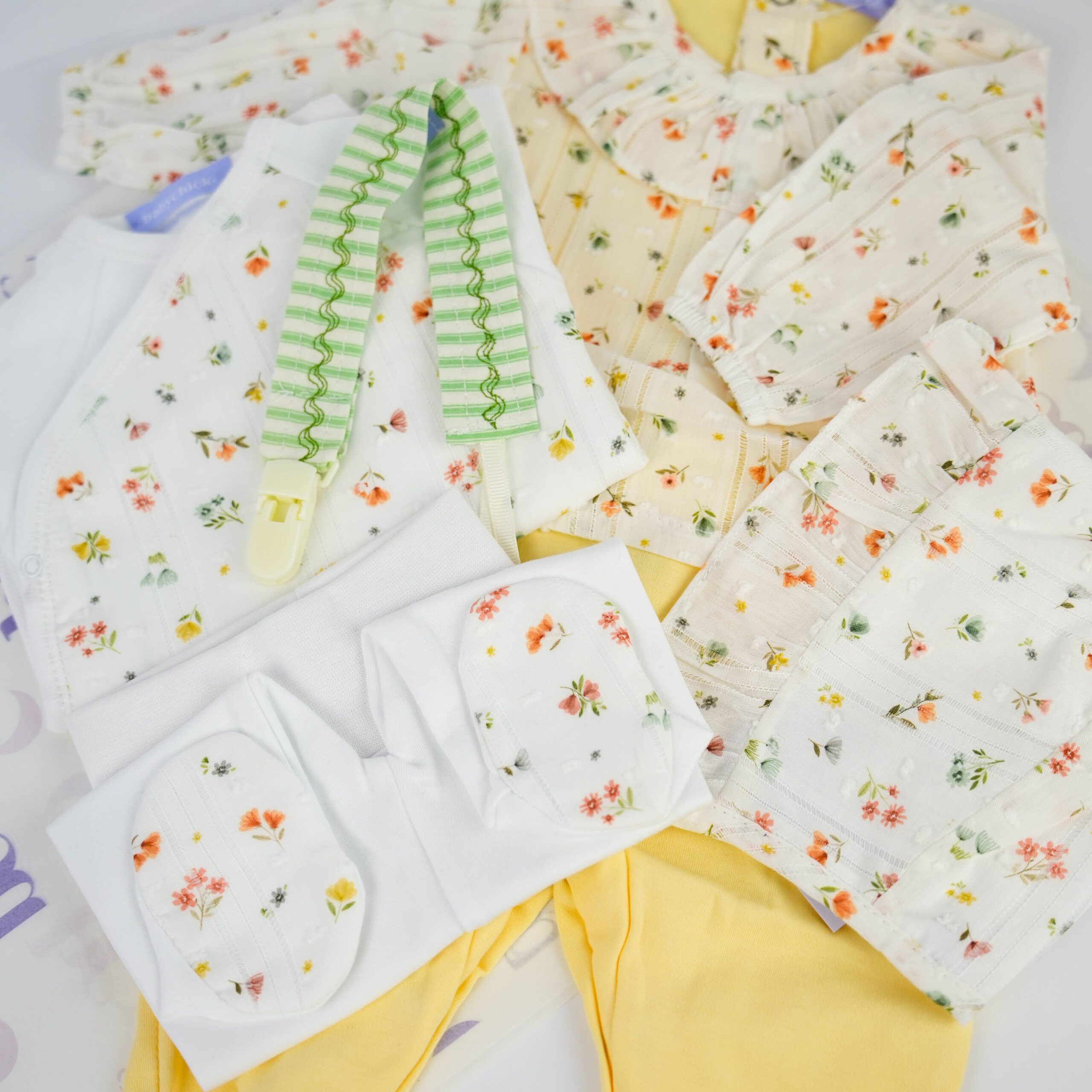 O conjunto foi pensado para envolver o bebé no máximo conforto. Inclui Body com calça e Babygrow com touca e prende chucha, cuidadosamente confeccionados para manter o conforto do seu bebé.
