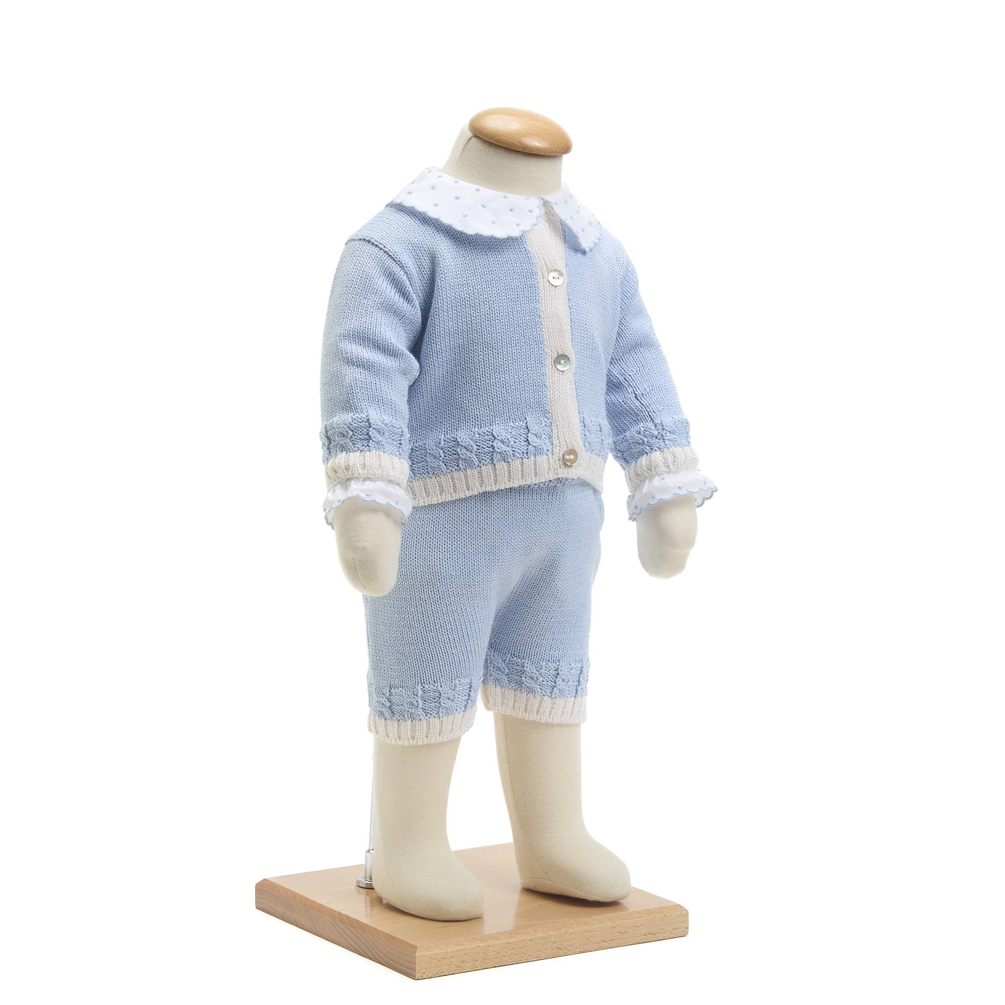 Encante o seu bebé com este adorável conjunto de Casaco e Calção Lumière em malha azul, cuidadosamente elaborado em tons de azul, enquanto os delicados pormenores em bege nos punhos do casaco e no calção acrescentam um toque de charme. Feito com amor em malha suave e delicada, este conjunto oferece não só conforto, mas também elegância em cada detalhe. Assim, os tons harmoniosos criam um look tradicional e encantador — perfeito para os dias frios de inverno.