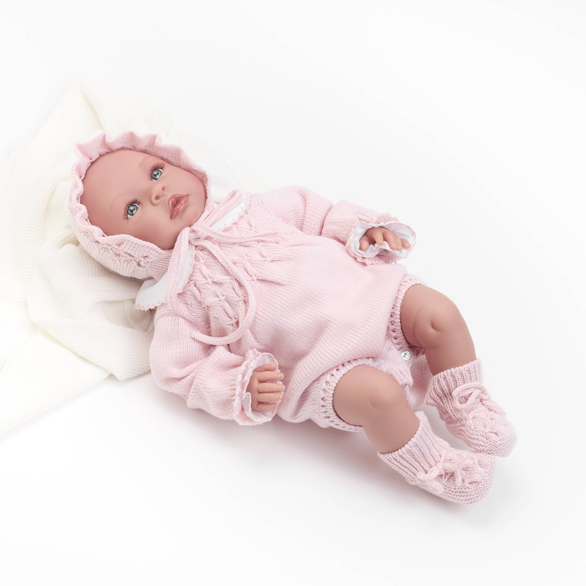 Um conjunto criado para envolver o bebé na suavidade e no calor natural da lã merino. Composto por fofo em malha, touca e botinhas a condizer, é cuidadosamente confeccionado de forma artesanal, garantindo conforto, elegância e um toque de ternura em cada detalhe.
