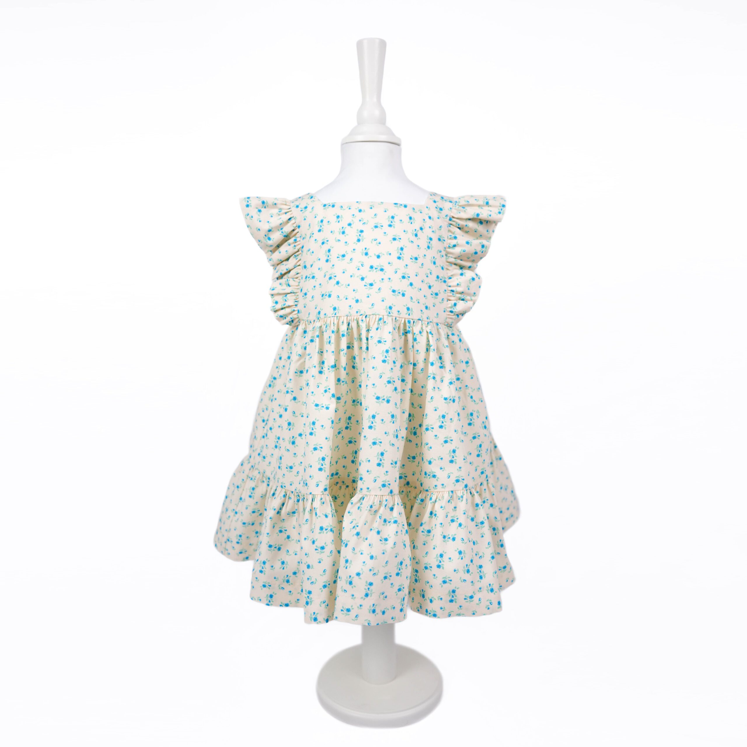 Encante com este vestido de menina com florinhas azuis, perfeito para a primavera e verão.