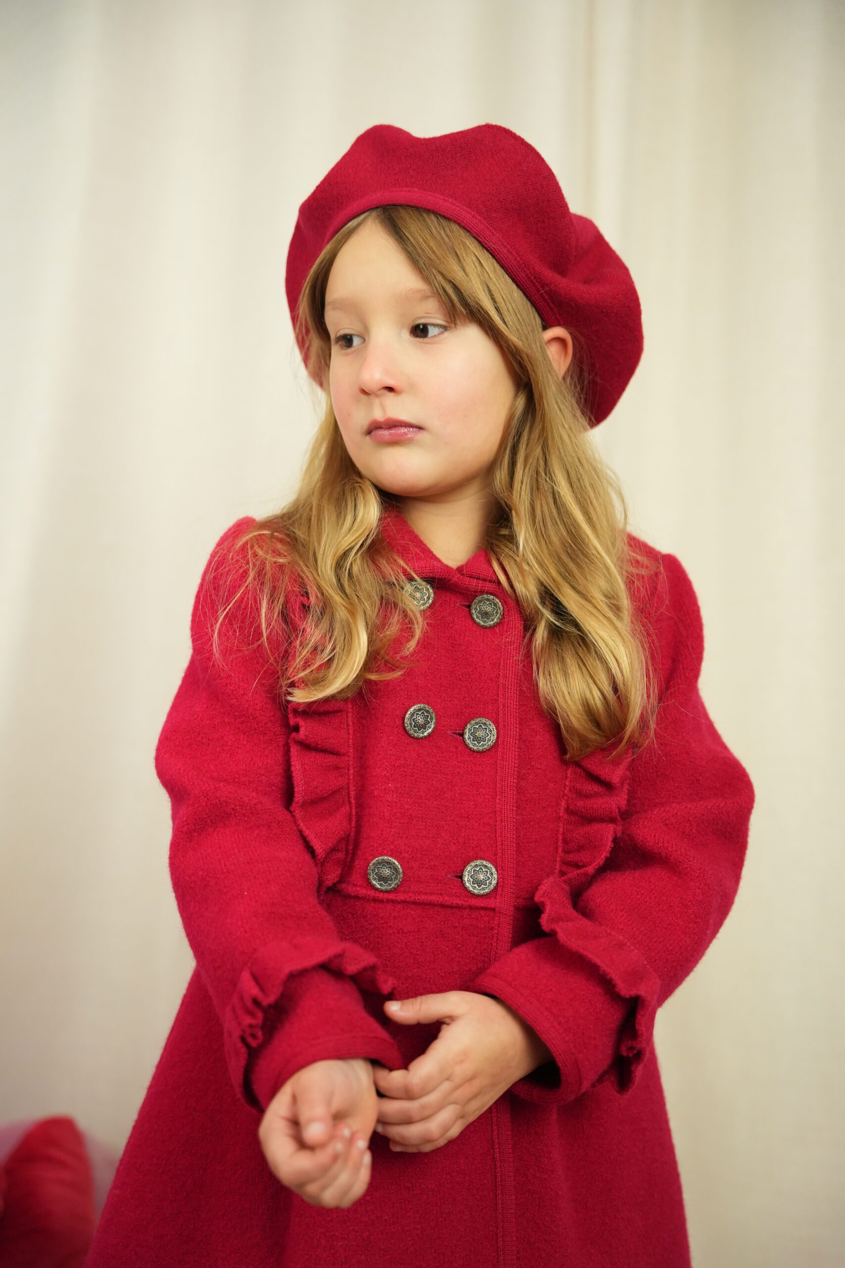 Com um corte clássico levemente alongado, o modelo destaca-se pela lapela discreta, manga comprida e bolsos que acrescentam charme. O seu tom em vermelho, transmite um estilo refinado e versátil, ideal tanto para o dia-a-dia escolar como para ocasiões especiais.