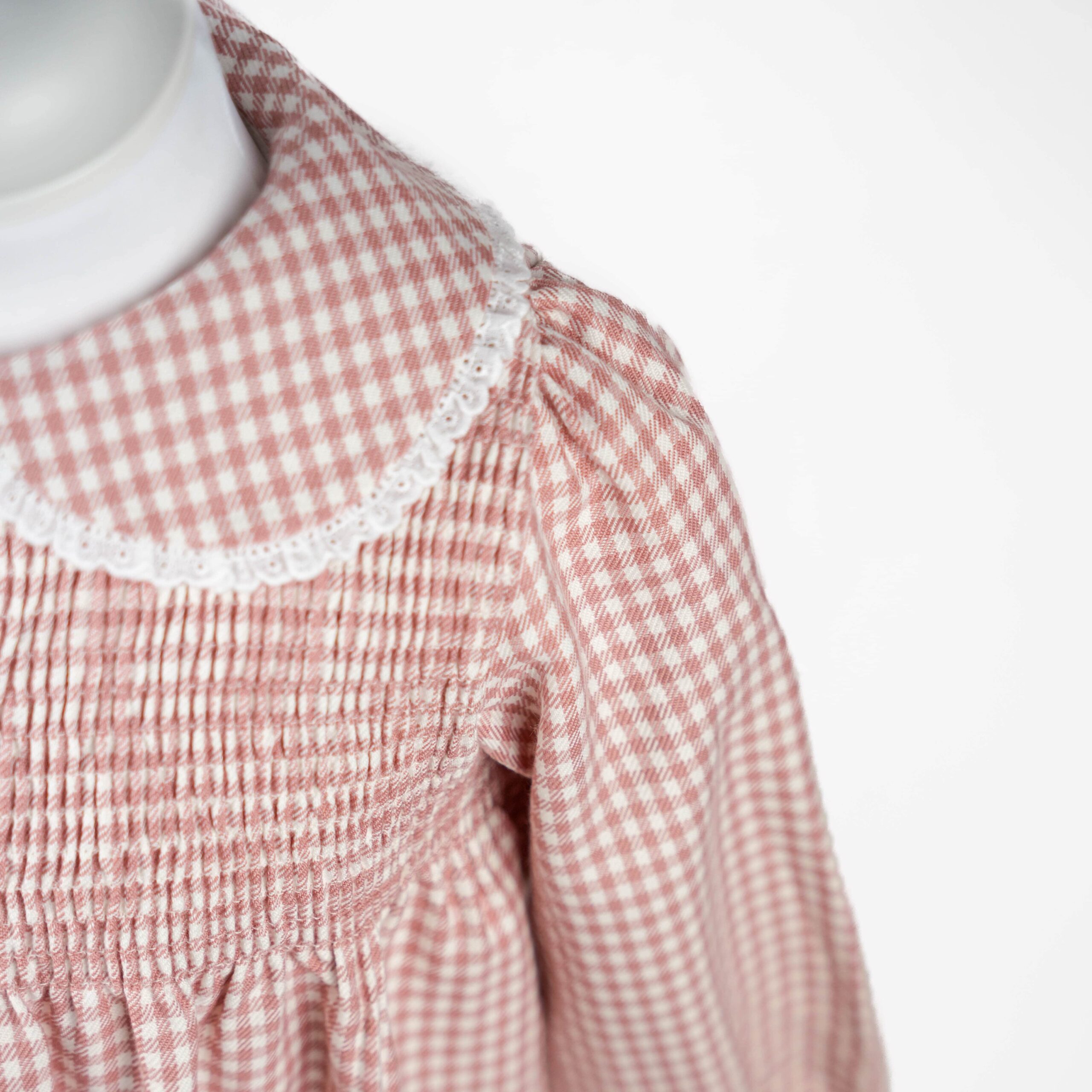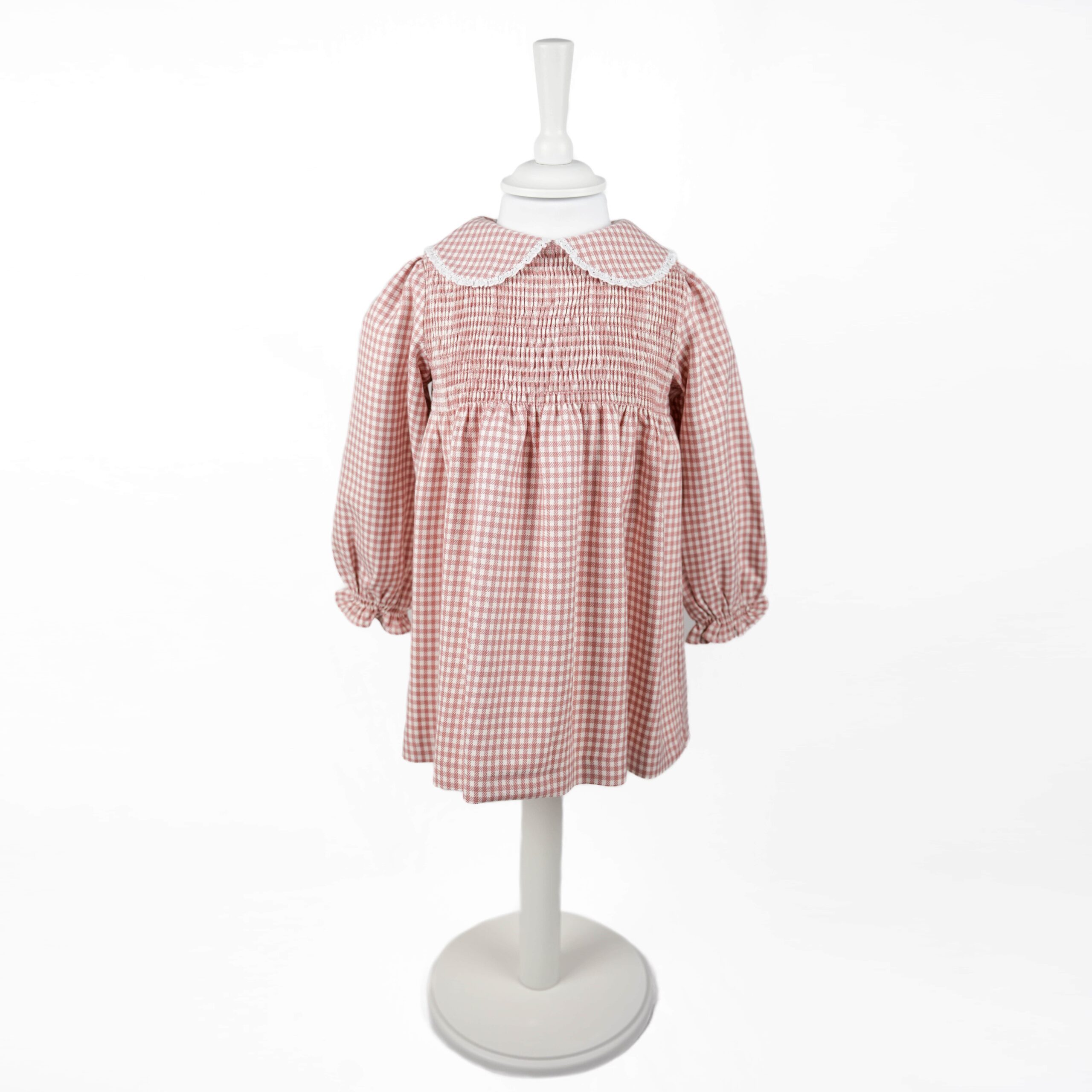 O vestido destaca-se pelo efeito smocked no vestido, um detalhe sofisticado que realça a cintura e acrescenta um toque delicado e luxuoso à peça. Com mangas compridas e corte delicado, proporciona conforto e liberdade de movimento, mantendo o estilo refinado que caracteriza a Babychick.