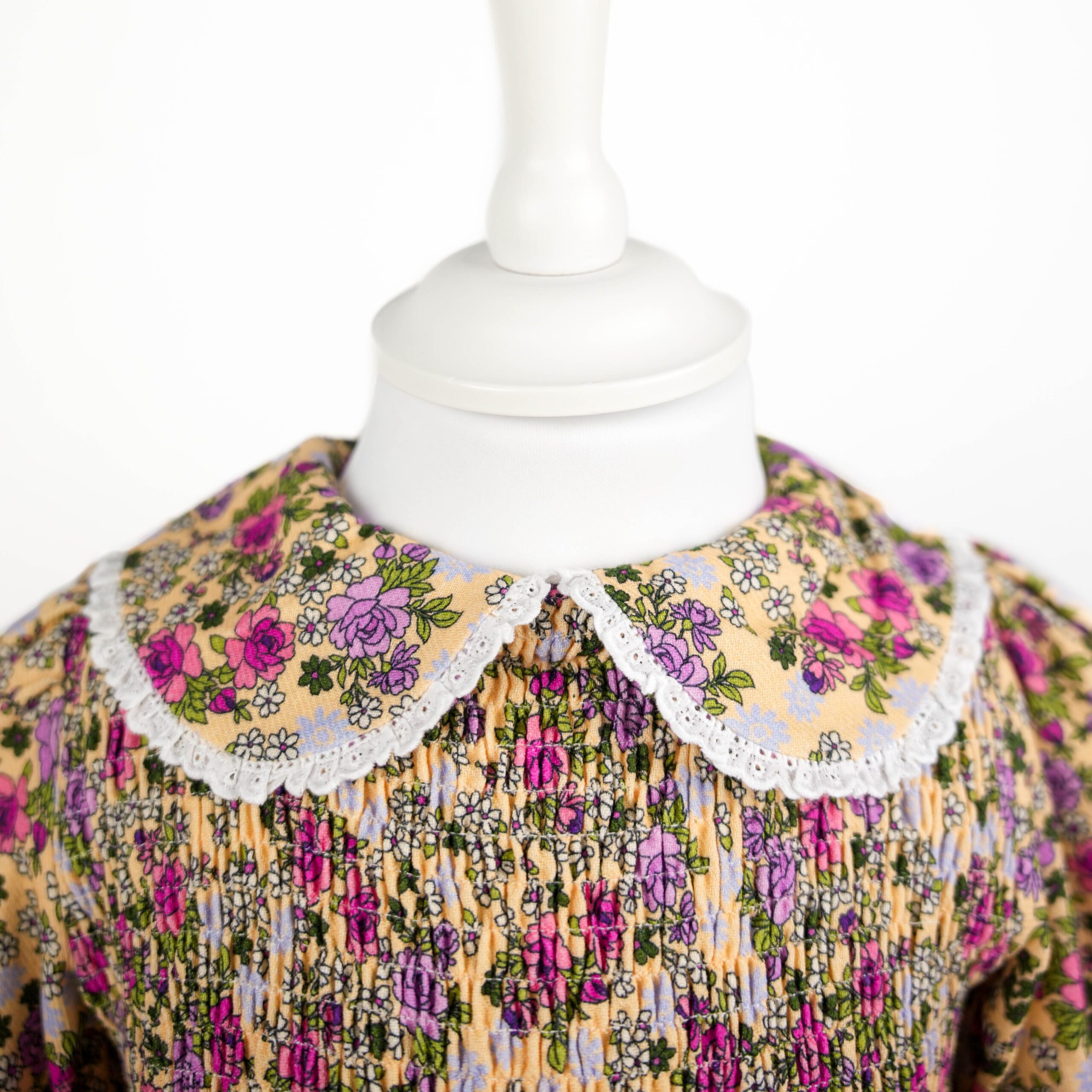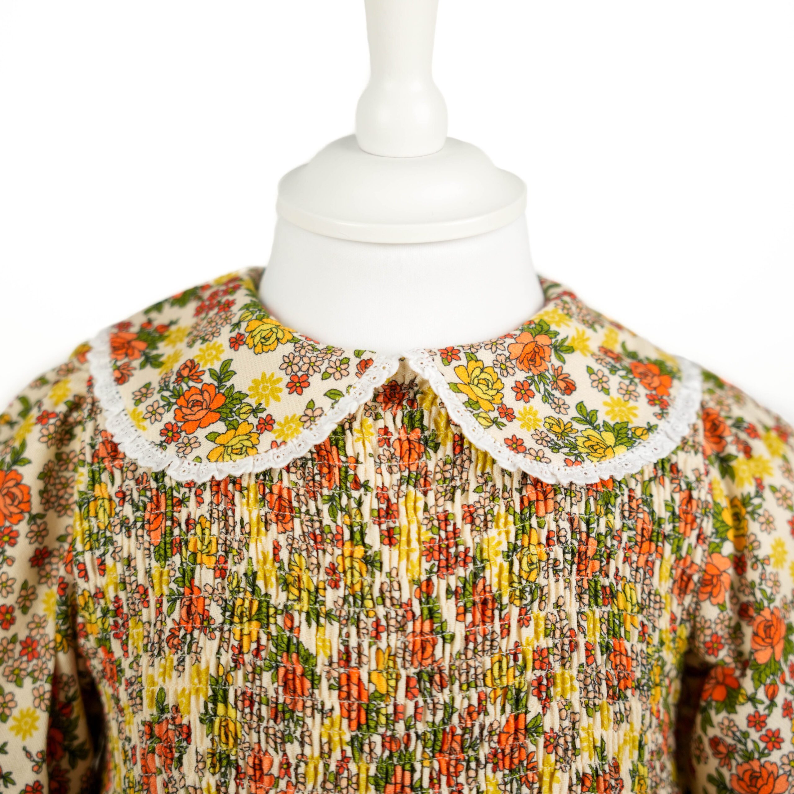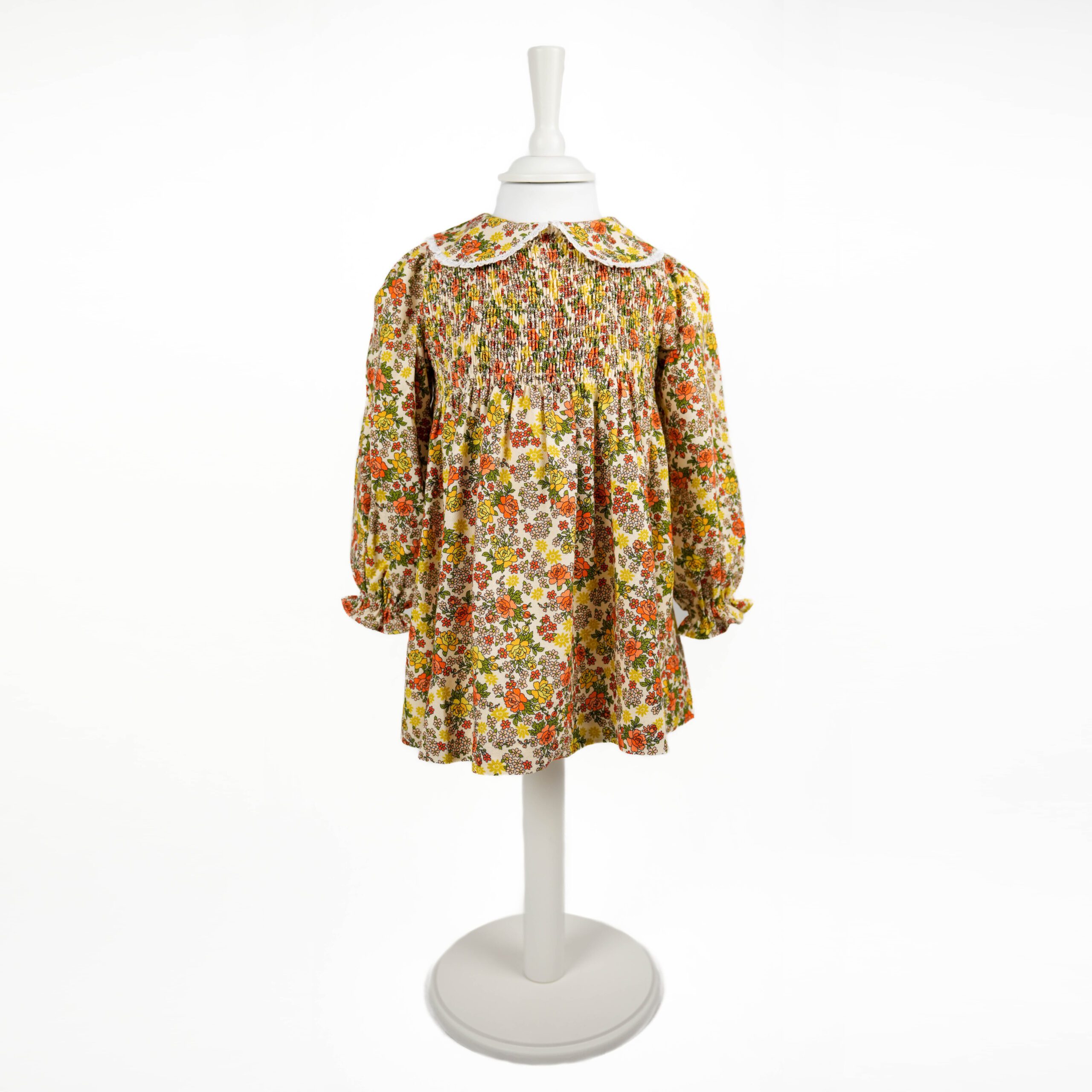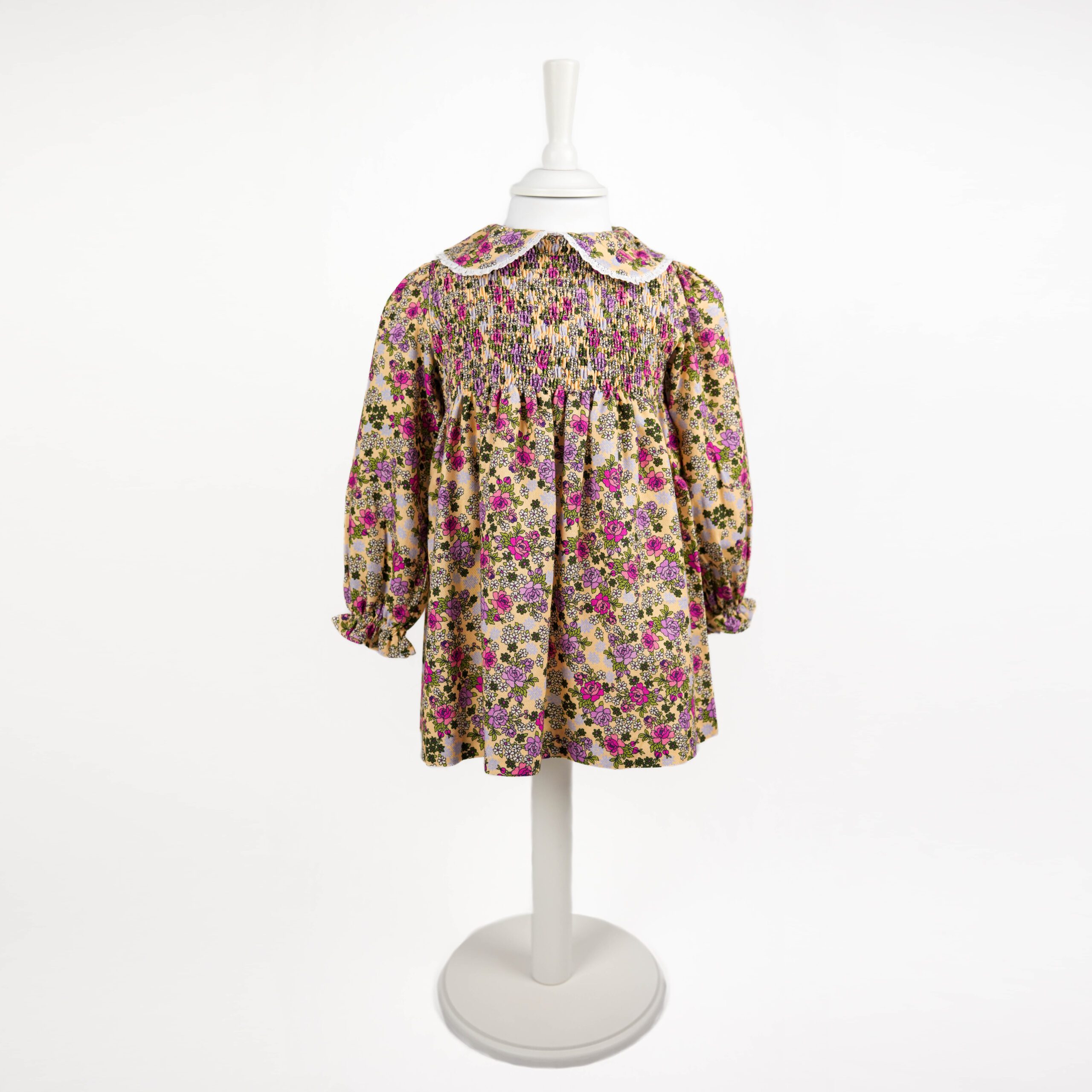 Vestido de menina Florido com efeito smocked. Elegante, confortável e ideal para a primavera com um toque de ternura em cada detalhe.