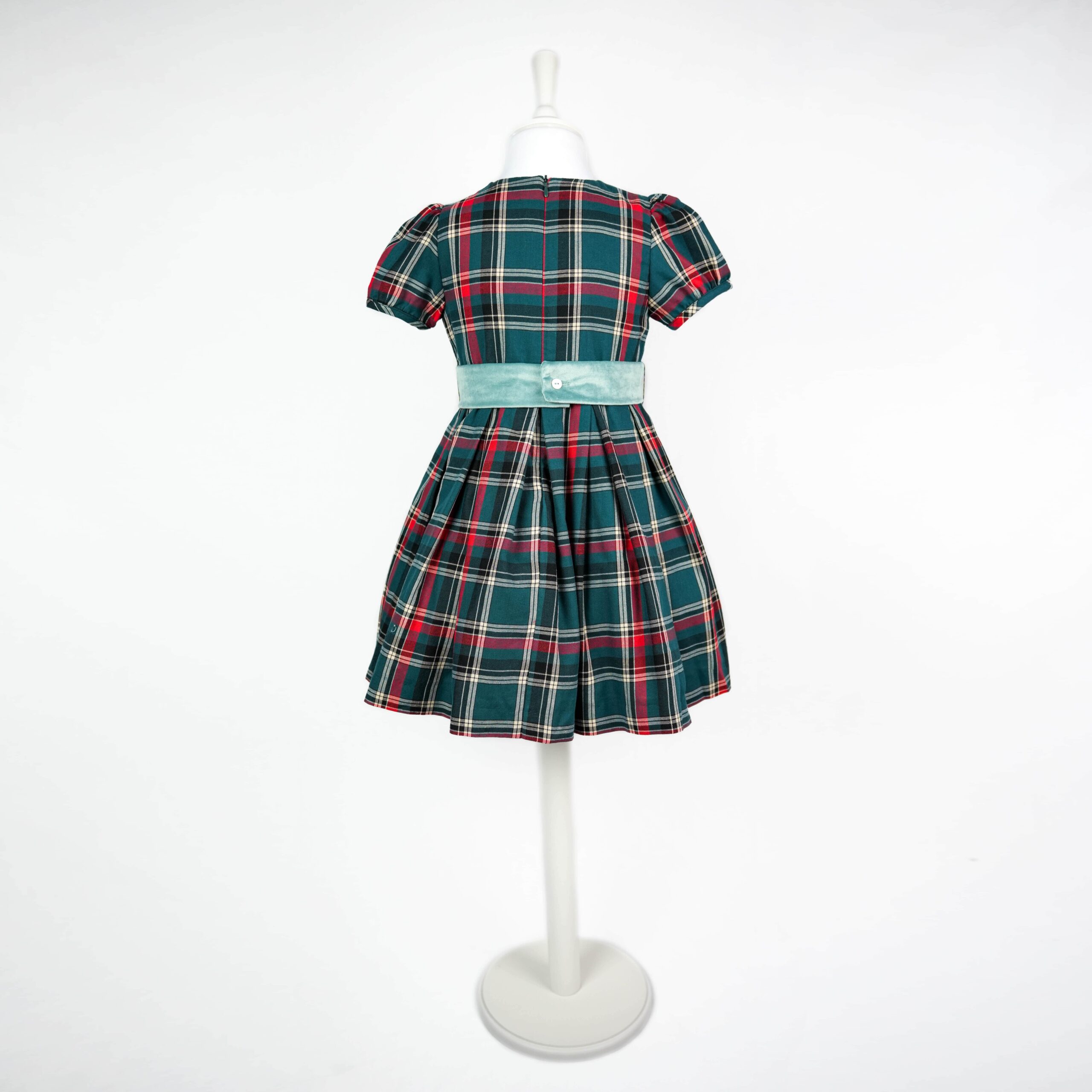 O vestido destaca-se pelo cinto em veludo verde claro, um detalhe sofisticado que realça a cintura e acrescenta um toque delicado e luxuoso à peça. Com mangas compridas e corte delicado, proporciona conforto e liberdade de movimento, mantendo o estilo refinado que caracteriza a Babychick.